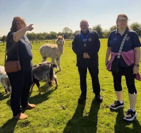 On Thursday, the sun was shining as Alton Lions President, Paul Taroni, and fellow Lions Annette Mill, Julie Sibley and Moira Baker, joined families who enjoyed meeting the animals on the farm, amongst them miniature goats, sheep, ponies and a lively alpaca; with ducks on one of the two ponds, soon to benefit from a bird hide; and the beginnings of an orchard walk, being developed to enable wheelchair users in particular to get up close to the fruit trees and the birds and insects they attract.